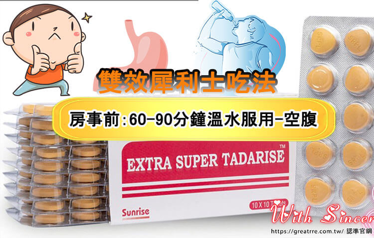 他達拉非(Tadalafil),商品名:犀利士 (Cialis®)。約 30~45 分鐘開始作用,藥效約持續長達 36 小時。愛愛前1~2小時空腹服用,可試需求調整用量,也可少量每日服用。