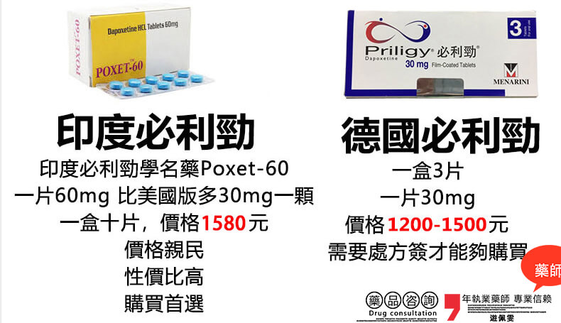 必利勁(英文名:Priligy 學名:達泊西汀)是目前唯一針對早洩(PE)研發的藥物,也是唯一獲得國家食品藥品監督管理局(CEDA)批準的早洩(PE)這應癥的治療藥物,必利勁是全球公認的治療早洩最有效的藥物,延時效果超級好,俗稱早洩剋星,它是治療性的藥物,不是所謂激素性的藥物,也沒有依賴性。隨著服用次數的增加,纍計服用壹定數量時(每個人體質不同,數量不同),即使停用藥物性生活時間也可維持在服藥時的水平。必利勁讓早洩男同胞看到了希望喔。必利勁延時效果強勁,副作用小。三倍延時,有效延長性愛時間20分鐘以上,讓您肆意享受。