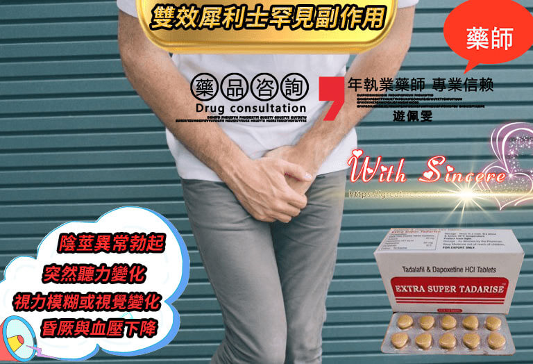 在使用 雙效犀利士(Super Tadarise) 改善勃起功能障礙與早洩問題的同時,許多患者最擔心的就是:是否會出現副作用?副作用嚴重嗎?