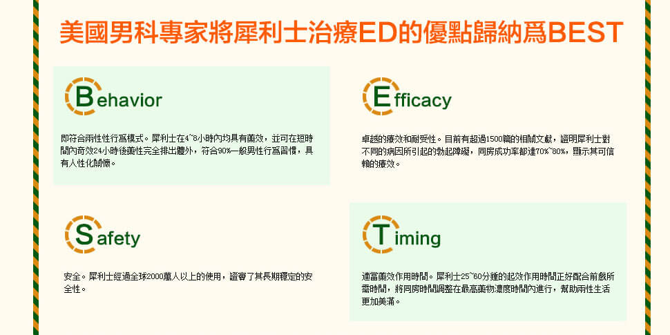 犀利士(Cialis),是由美國禮來製藥廠研製出品的一種口服治療ED的藥物,學名他達拉非,犀利士的有效成分是他達拉非,作用機理是藉由抑製PDE5,使PDE5對cGMP的特異破壞變緩慢,在人有性刺激時,陰莖海綿體中的NO釋放並啟動cGMPase讓cGMP的水準增高,海綿體內平滑肌將放鬆,流入血液增多,陰莖海綿體內血液充盈,有效達到自然性勃起。用於治療勃起功能障礙以及早泄,對於勃起功能減退與早泄有非常顯著的改善效果,犀利士能改善陰莖的血流和促進健康勃起,服用後最高持續36小時有效,幫助ED患者勃起,速效壯陽,让您重振雄风。