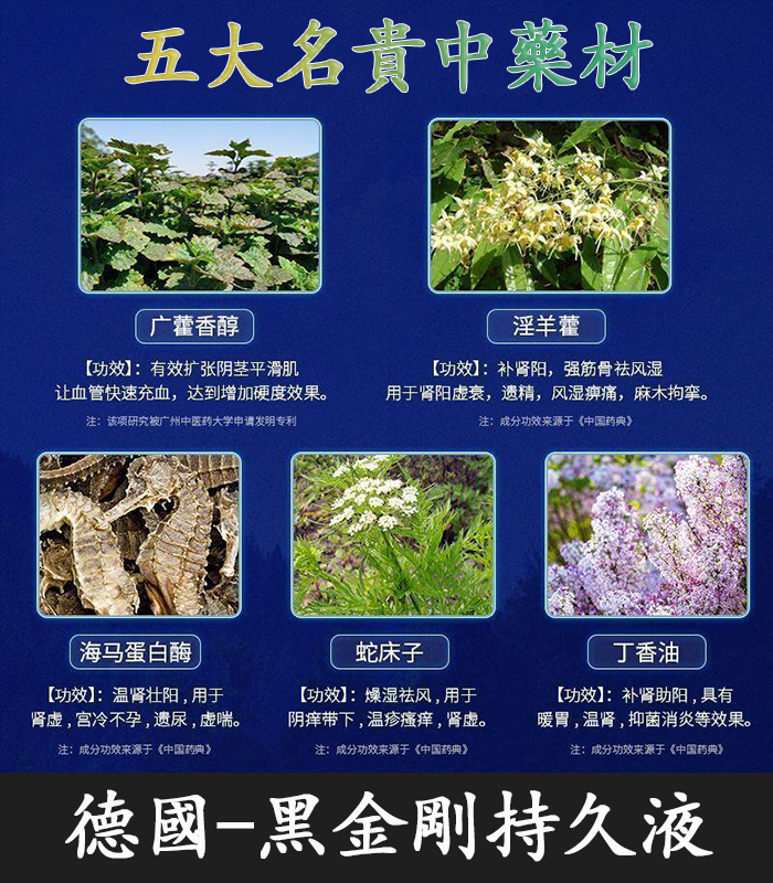 • 巴戟天:天然壯陽成分,提升持久表現。