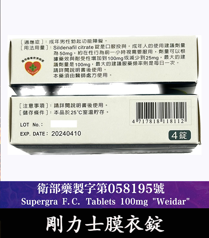 | 成分 | Sildenafil Citrate 100mg(西地那非) |