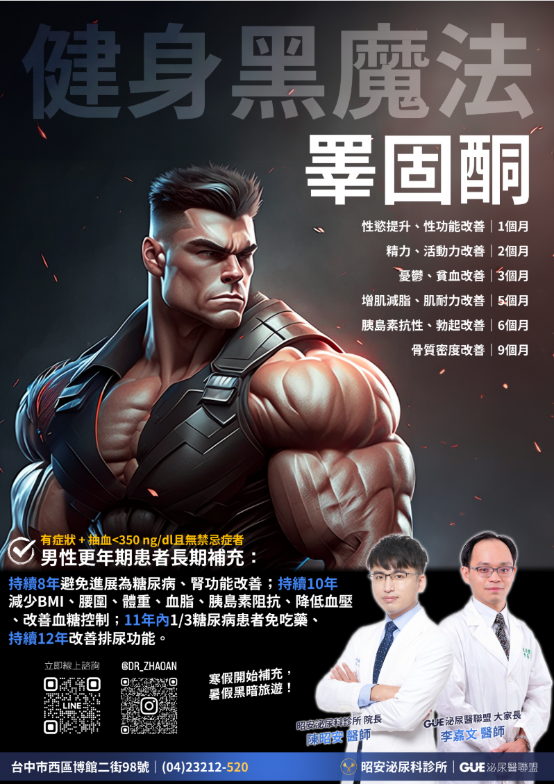 - 高劑量可能導致副作用,如胸部增大、前列腺肥大或勃起功能異常等。
