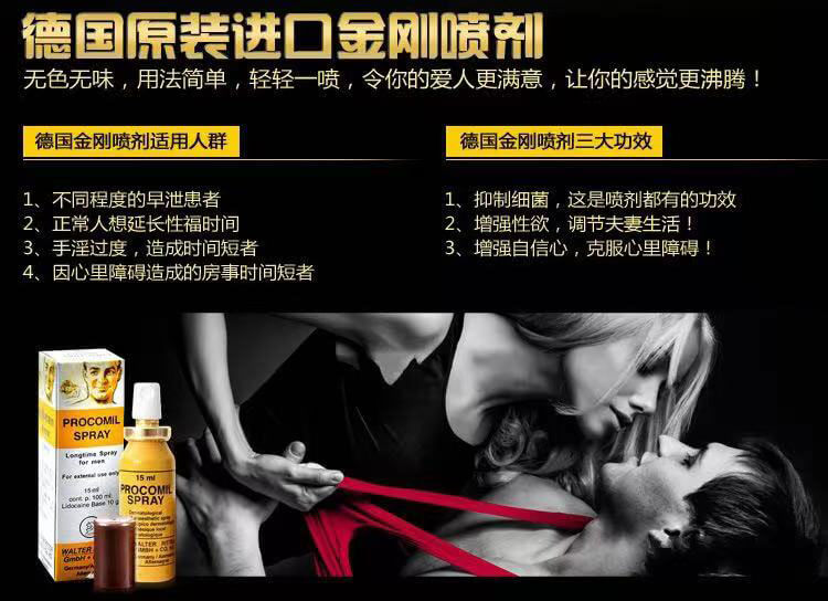 作為歐洲最受歡迎的男性延時噴劑之一,德國黑金剛持久液(PROCOMIL SPRAY)以其穩定、安全、無麻木的延時效果深受男性青睞。